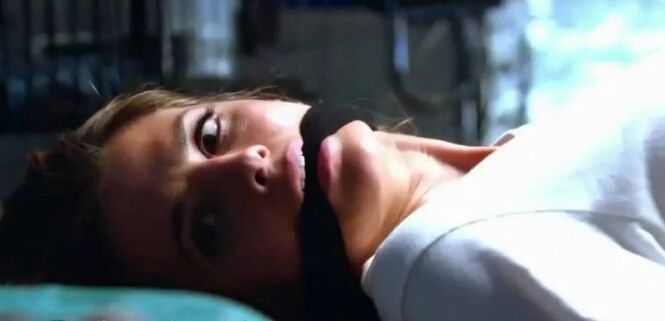 he finds a monitor of Beckett. She’s tied to a gurney but still very
